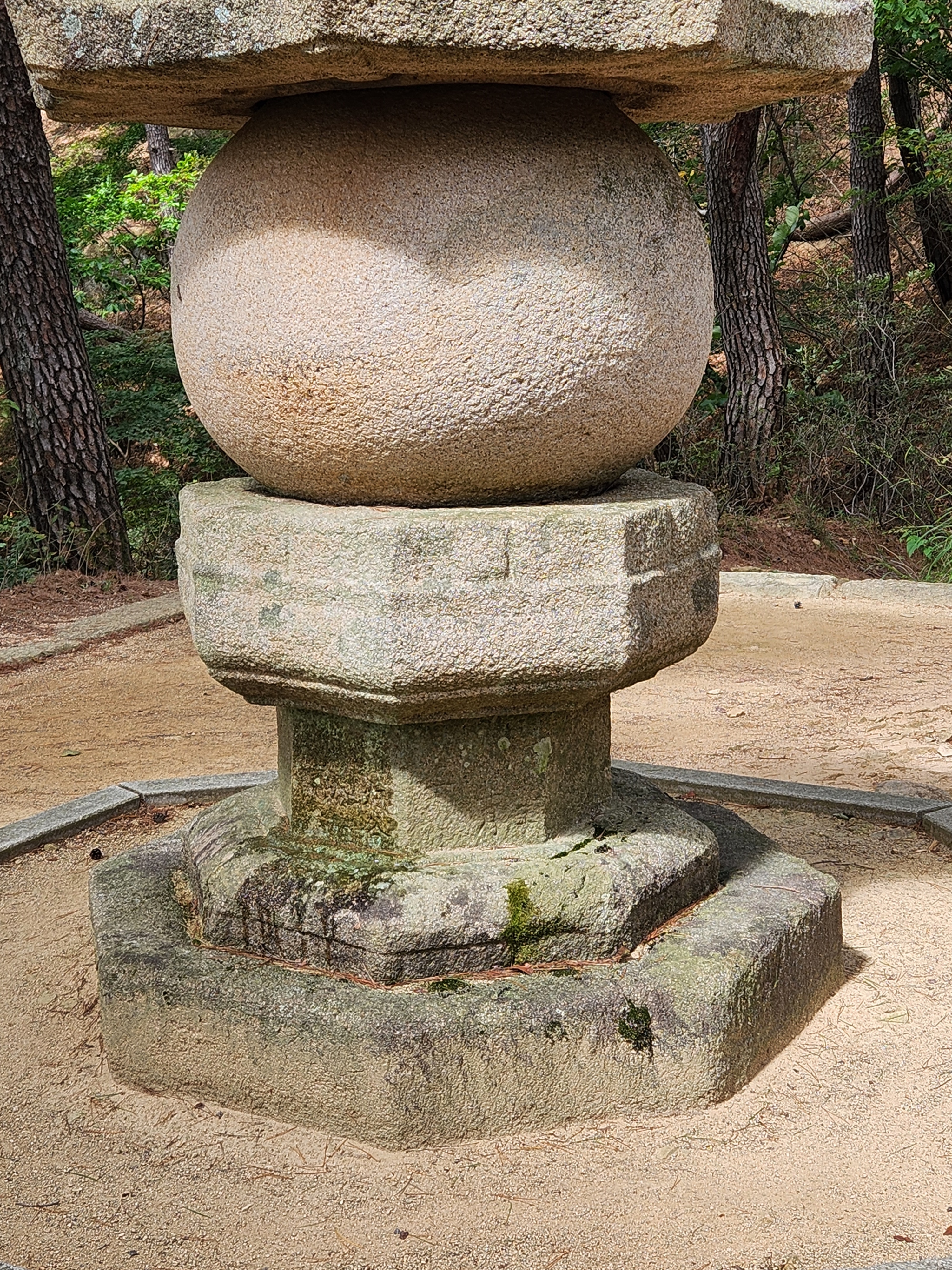 하대는 지대석(地臺石)의 구실까지 하고 있어 높은 편이나 윗면에는 아무런 조식(彫飾)도 없다. 팔각의 중대석도 별다른 장식이 없고, 상대석은 측면 아래의 모서리를 죽여 활처럼 굽은 모양을 이루었고 이에 연속하여 1단의 받침을 조각하였는데 이것은 사면이어서 하대 괴임돌의 상면과 대칭을 이루었다.