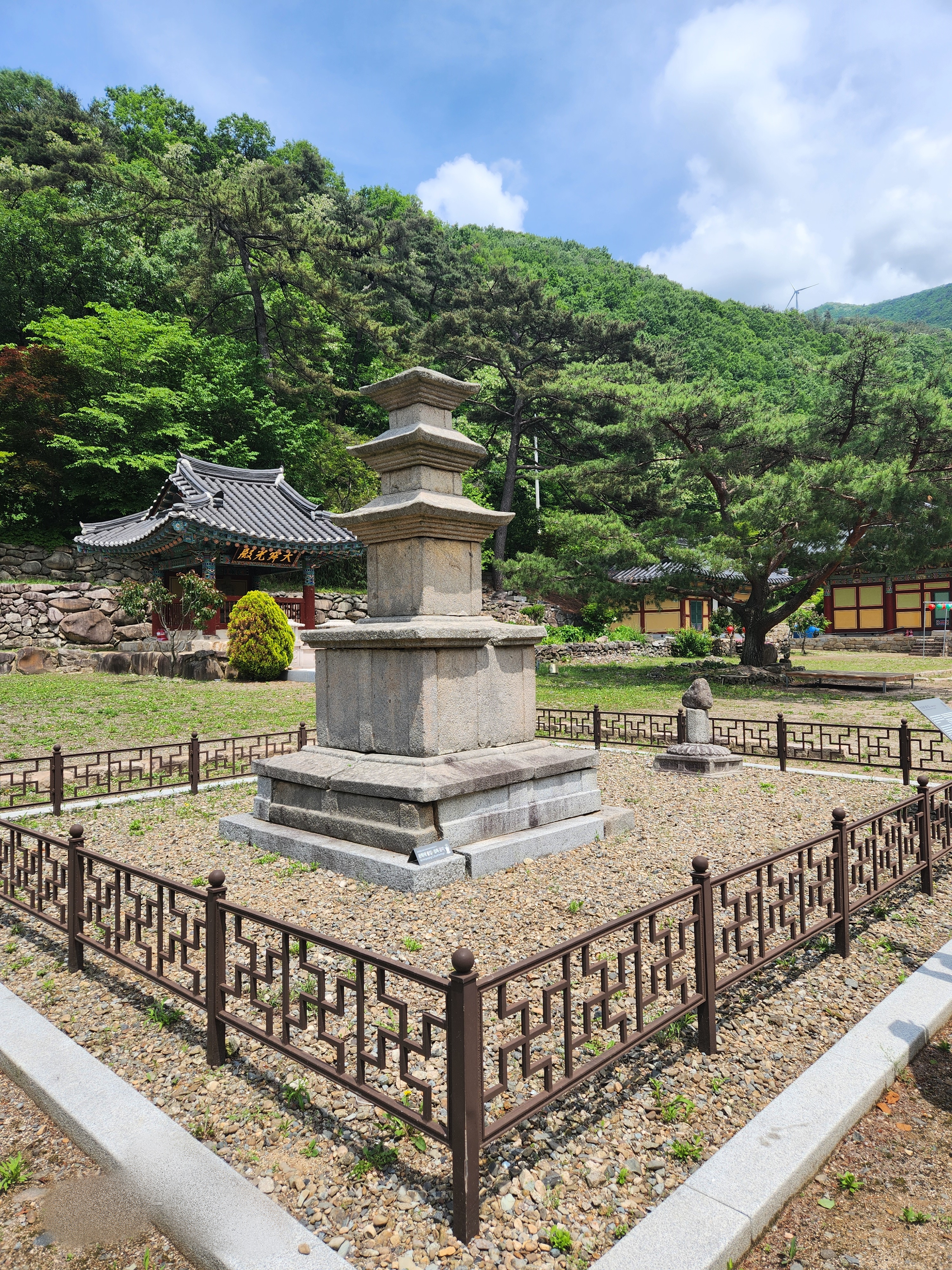 1980년 보물로 지정되었다. 높이 2.7m. 아래층 기단 갑석(甲石)은 윗면에 경사가 있고 추녀에 반전(反轉)이 있으며 상면 중앙에 높직한 굄이 있고 그 위에 상층기단(上層基壇) 중석이 놓여 있다.